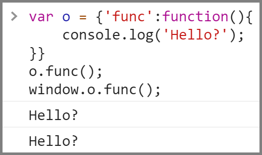 var o = {'func':function(){