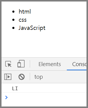 태그의 이름인 li 가 출력되는 것을 확인할 수 있습니다.