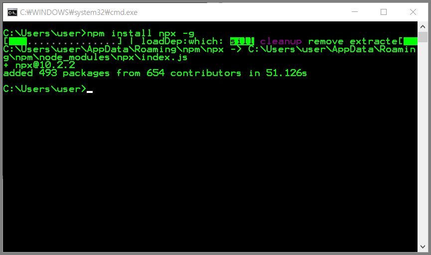 cmd 창에서 npm install npx -g 입력해줍시다.