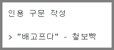 인용구문은 다음과 같이 > 를 이용해 작성한다.