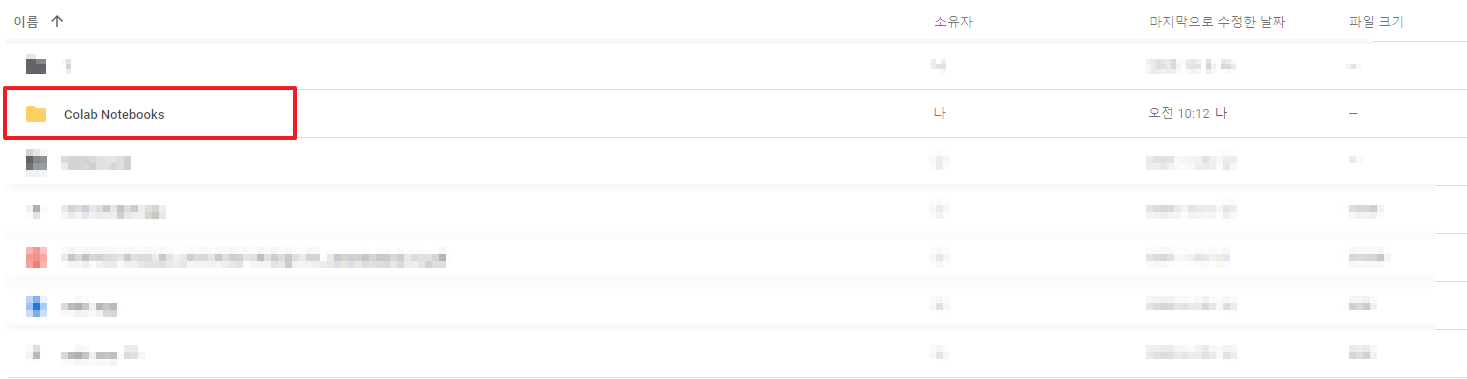 사진과 같이"Colab Notebooks" 폴더가 생깁니다. 해당 폴더를 들어가면