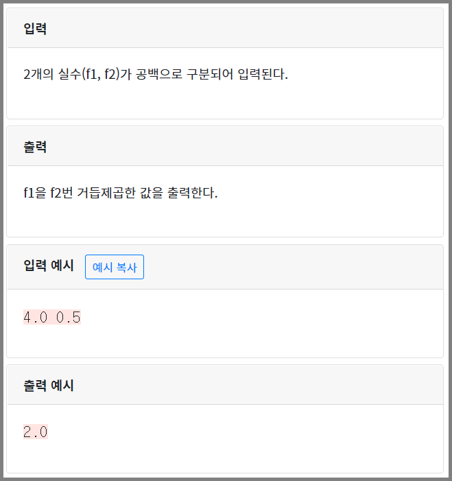 [기초-산술연산] 실수 2개 입력받아 거듭제곱 계산하기(py)