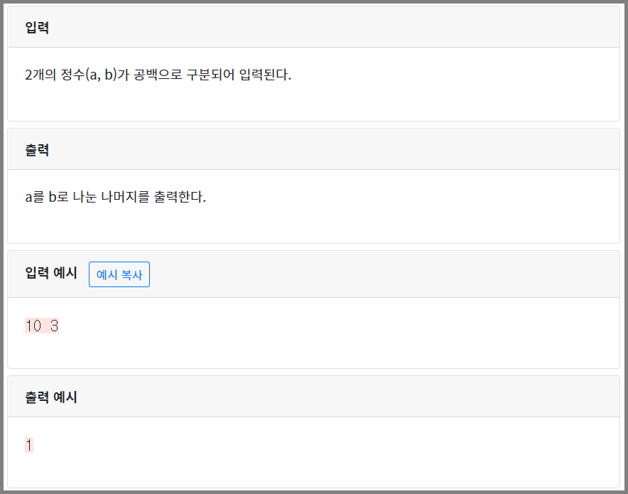 [기초-산술연산] 정수 2개 입력받아 나눈 나머지 계산하기(설명)(py)