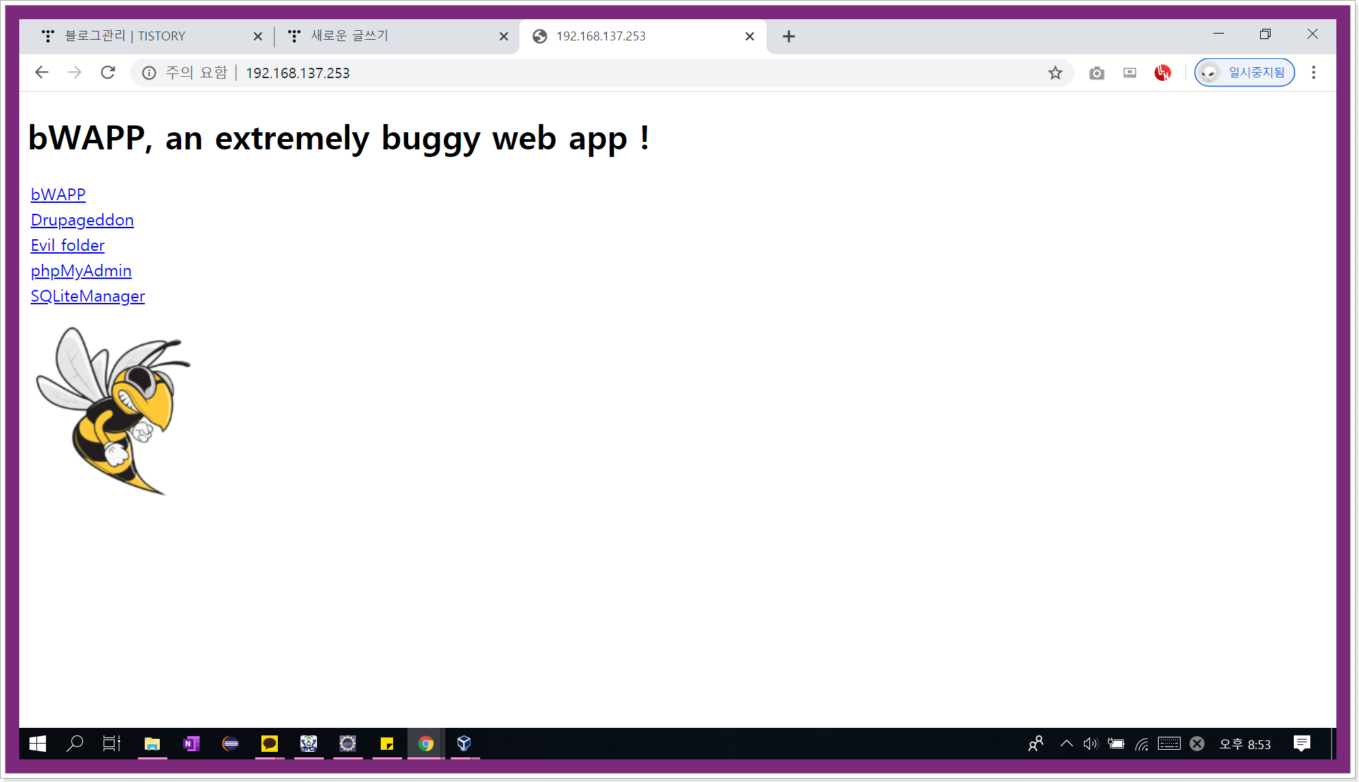 브라우저에서 Bee-Box의 IP로 접근해봅니다.