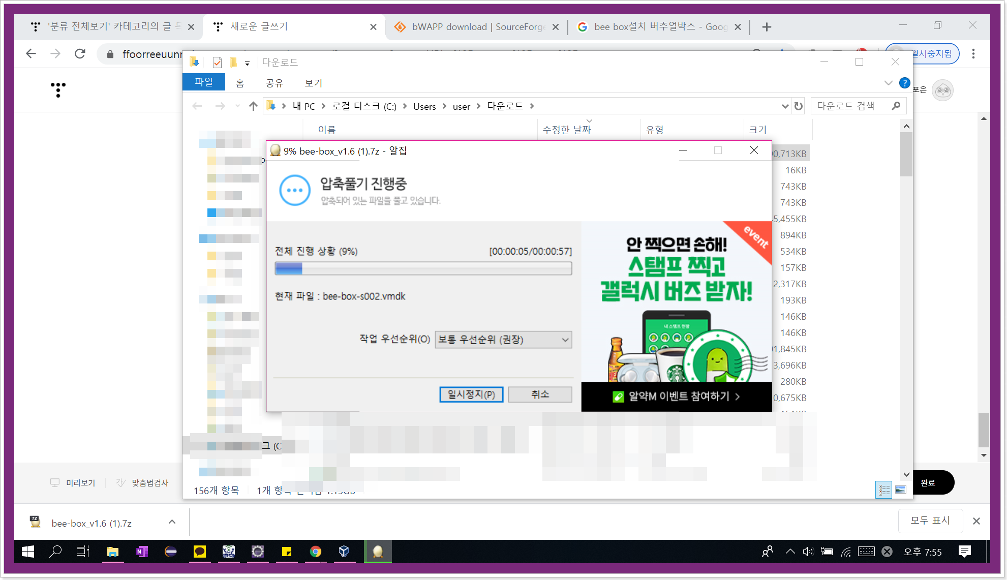 파일모양을 눌러 다운로드 받은 비박스의 압축을 푼 디렉터리로 이동합니다.
