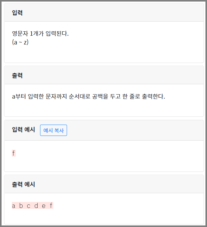 [기초-반복실행구조] 문자 1개 입력받아 알파벳 출력하기(설명)(py)