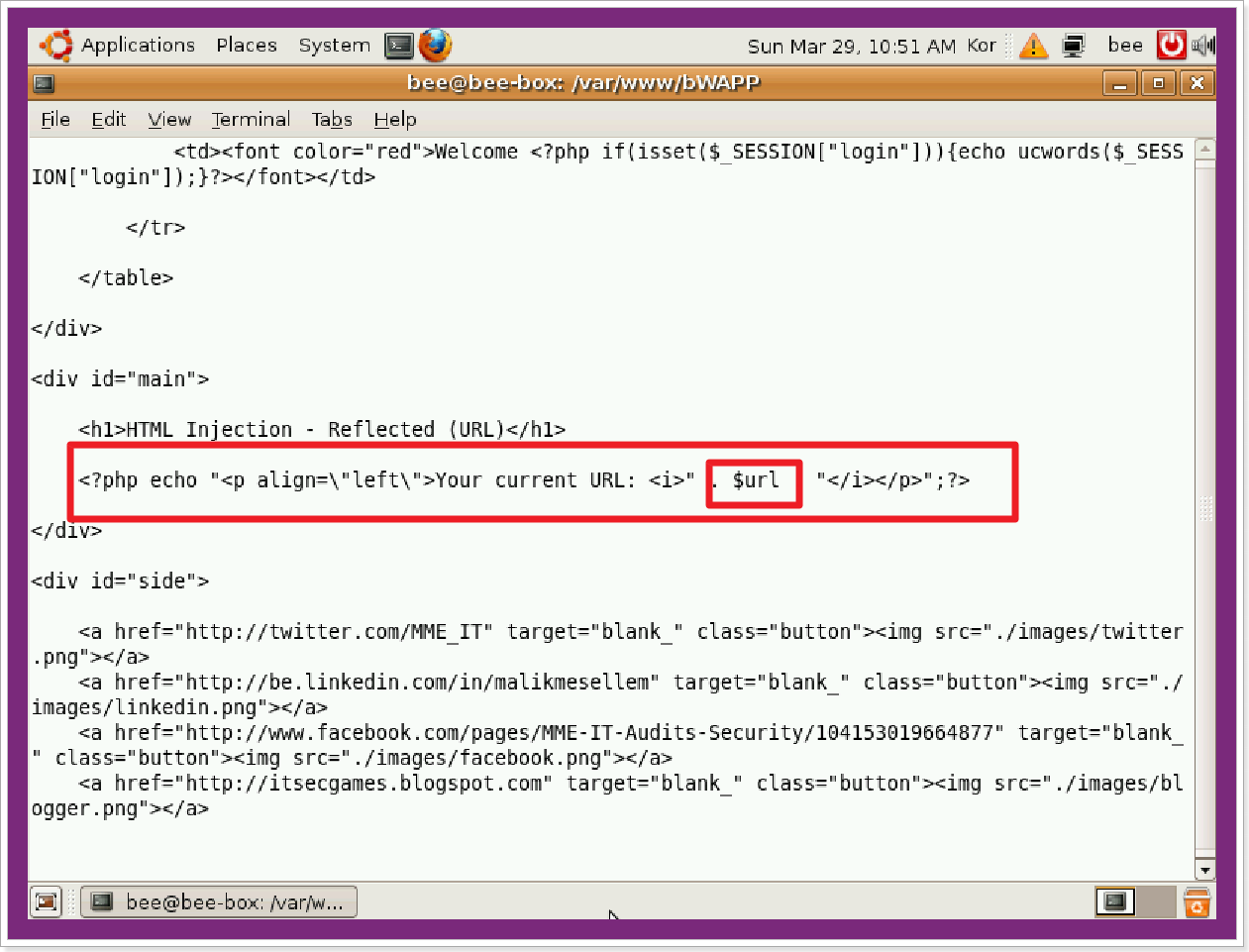 안녕하세요. 오늘 포스팅은 HTML Injection - Reflected (URL) 비박스 실습을 해보도록하겠습니다.