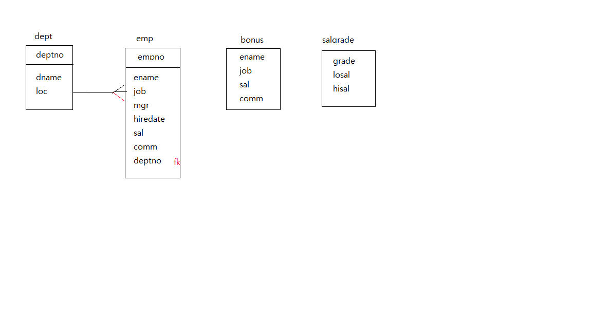 위의 구조에서, dept 테이블에는 부서와 관련된 정보가 저장되어 있습니다.