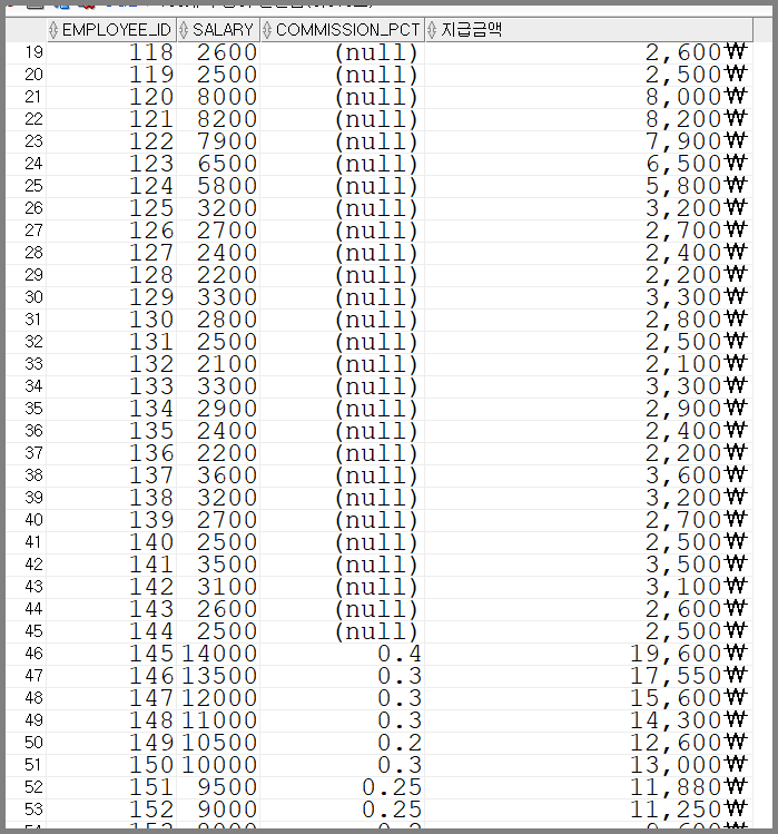 사번(employee_id), 급여(salary), commission비율(commission_pct), 지급금액을 사번순으로 출력하라.
