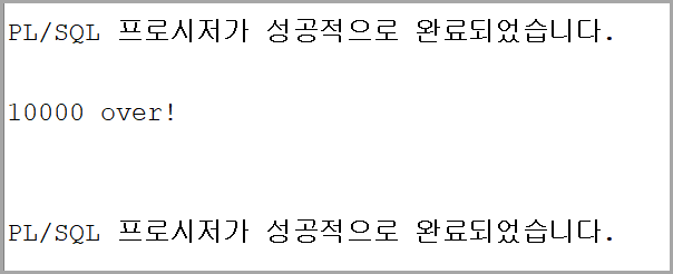 -- 사용자 정의 exception인 invalid_sumsal 을 일으키고 '10000 over!' 라는 에러메시지를 출력하라