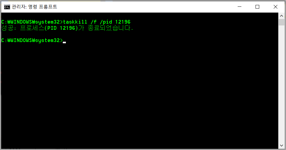 이렇게 하면, 8080 포트를 쓰고 있는 프로세스를 죽여서