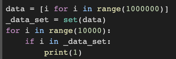 값을 찾기 위해 list 에서 in 을 사용하게 된다면, 해당 연산의 시간 복잡도는 O(n) 일 것이다.