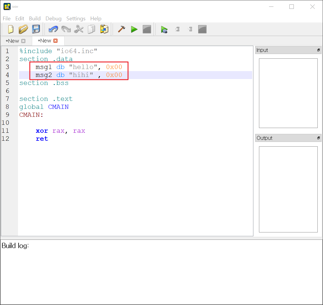 우선 SASM을 켜서 새 문서를 만듭니다.