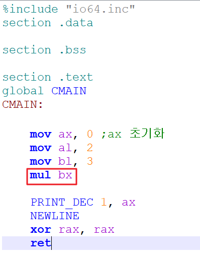 mul 뒤에 붙는 파라미터 값은 AL 과 곱해져 AL에 저장됩니다.