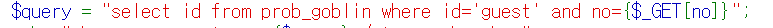 no의 값을 거짓, 즉 아무 의미없는 숫자를 넣어 id='guset' and no=어쩌구 의 값을 거짓으로 만든 후,