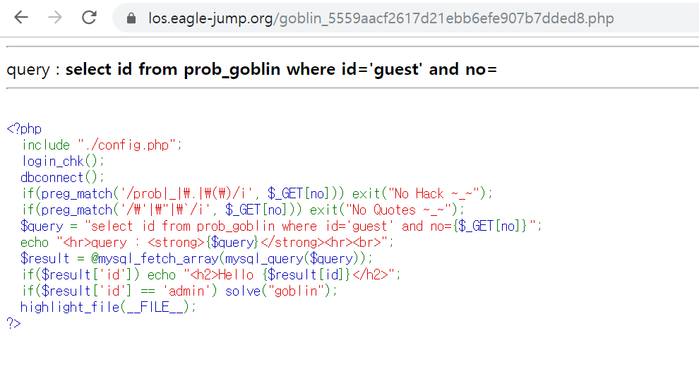 문제를 해결하려면 id값이 admin이 되어야 하는데, 보이는 것과 같이 쿼리문에는 guest로 id값이 고정되어있다.