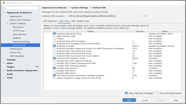 2. Android SDK > SDK Tools 모습 : 그림과 같이 설정하고 설치하면 완성!